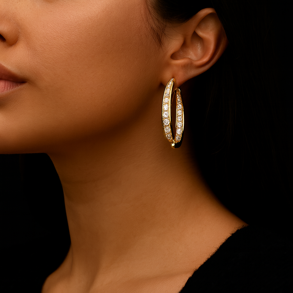 The Eclipse Hoops embody modern sophistication with a celestial edge. Featuring dual-layered gold arcs encrusted with precision-cut crystals, they reflect the balance between brilliance and shadow just like an eclipse.